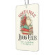 A festive and cheerful Christmas design showcasing a stack of red and green books adorned with poinsettia flowers, fern branches, and a steaming cup of hot cocoa topped with whipped cream. The vibrant text says, "North Pole Book Club, 'Tis the Season to Be Reading." This delightful design is available on a range of products that make perfect gifts for book lovers.