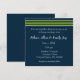 A band of green stripes pop on this navy blue wedding invitation