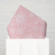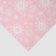 Tissue paper is shown in a blush pink colour with a white snowflakes print design.