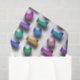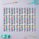 3D buttons, in rectangles and circles, are shown in multiple pastel colours. Design replicated multiple times on a diagonal, across the surface. Yellow, orange, pink, magenta, turquoise, blue, purple
