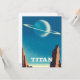 Titan & The ringed planet Saturn Vintage Style Space Art.
