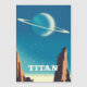 Titan & The ringed planet Saturn Vintage Style Space Art.