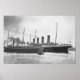Here's one of those great "what-if" moments in maritime history. As Titanic left port the suction from her three propellers pulled the SS City of New York to her. The two liners came within feet of a collision. The st eam tug you see in the foreground is what kept them apart. Can you imagine what could have happened if a minor collision kept Titanic in port for a few days? This is a old newspaper photograph of that near miss. It need a lot of restoration and enhancement to bring out any detail at all. If you saw the horrible original you'd be able to note the striking different between the two versions. Nevertheless, this photo will not be crystal as most of my restorations are. But you can see the ships and even the people on them. I think the effort was worth it for this very rare historical photo.