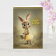 Celebrate the joy of spring with this adorable Easter greeting card featuring a sweet bunny in a sunny yellow dress and flower crown, holding a basket filled with colorful Easter eggs. Surrounded by soft golden light and fluttering butterflies, this whimsical design captures the warmth, happiness, and renewal of the Easter season. A charming card to send festive Easter wishes to friends, family, or anyone who loves cute bunny art and cheerful springtime scenes.