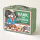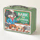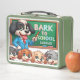 This fun lunchbox shows a cartoon dog dressed as a teacher, pointing at a chalkboard with "BACK TO SCHOOL" written in a colourful blocky font. A group of cartoon puppies, some excited, some nervous, some just plain goofy, are being "photographed" by a puppy with a camera. The design captures the buzz and excitement of the first day of school. Perfect for kids who love attention