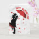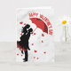 Celebrate your love with this elegant and romantic greeting card, featuring a beautiful silhouette of a couple sharing a sweet moment under a red heart-shaped umbrella. The classic red and black design against a clean background makes it a timeless choice for expressing your feelings this Valentine's Day.