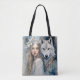Against the background of grey fog, in the delicate shades of water, the figure of a Slavic girl appears, surrounded by a mystical aura. Her gaze is full of power and determination, and at her side stands a majestic wolf, a symbol of wild nature and untamed freedom. This harmony between man and animal calls for discovering forgotten legends and the enchanted paths of Slavic ancestors.