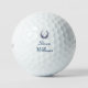 Titleist Pro V1 golf balls shown with a Navy Blue winner's wreath and clubs print, shown with a sample custom name, customise and change the text to yours.
