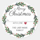Spread love and Christmas cheer with these Merry Christmas stickers. These round stickers showcase a beautifully designed wreath with a sweet heart and green leaves. Make your holiday greetings even more special by sealing envelopes or decorating packages with these adorable stickers.