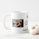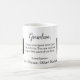 This keepsake mug features a teal coloured background with black text. A sample, heartfelt printed message or letter is printed across the mug and addressed to Grandma from a name of your choice. A photo appears on either side of the message. You can personalise the names and message on the mug to include your own names and custom message or quote, and your favourite photos. It's a wonderful way for Grandma to keep a personal message from her grandchildren or other loved ones.