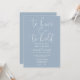 This dusty blue minimalist elegant script wedding invitation can be personalised with your information in chic typography with your wedding website details and your QR code on the reverse. Designed by Thisisnotme©