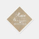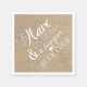 This simple, elegant wedding napkin features the phrase "To Have and to Hold, To Keep your Beer Cold" on a rustic burlap look background.