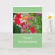 RED AND WHITE PETUNIAS. THROUGH A FAINT WIRE FENCE, PINK AND GOLD FLOWERS AMID GREEN FOLIAGE. FRONT TEXT: "TO MY OTHER MOM" AND INSIDE TEXT: "YOU'RE LIKE A SECOND MOTHER TO ME. THANK YOU FOR THAT. LOVE AND HAPPY MOTHERS DAY" TEXT IS COMPLETELY CUSTOMIZABLE.