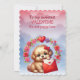 A sweet Valentine to give to your young child for Valentine's Day of a cute puppy holding a letter, surrounded by Red Roses