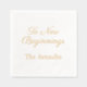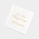 Celebrate in Style with Custom Foil Stamped Napkins – Mark life’s special moments with our elegant foil stamped napkins, featuring the inspiring phrase "To New Beginnings" in graceful script typography. Personalised with your family name in an easy-to-read serif font, these napkins add a sophisticated touch to weddings, engagement parties, anniversaries, retirement celebrations, New Year's Eve Parties and milestone events. Available in a variety of napkin and foil colours to match your theme, they’re both a stylish accent and a thoughtful keepsake for guests. Perfect for elevating your table settings while commemorating new chapters in life.