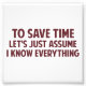 To Save Time Let's Just Assume I Know Everything Photo Print