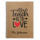 "To teach is to love" rustic kraft inspired notebook is perfect for Teachers! Combining cute typography with a red heart, this notebook can be personalised to add your favourite Teacher's name. Great as a gift for Teacher Appreciation, Birthday, Back to school or as an End of the Year Thank You gift. ©TeacherTribeMerch