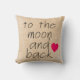 Cool homespun or burlap look, without the scratchy feel! This faux textured pillow features a slightly weathered and aged look, with the words TO THE MOON AND BACK and a bright pink heart. The back features the same texture look with just the pink heart. Feel free to use the CUSTOMIZE IT tool to add any text of your own.