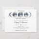 Gender neutral blue celestial Already Loved To The Moon And Back baby shower invitation features moon phases and zodiac stars.