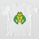 The t-shirt feels and looks great quality, a good thick cotton. It will be a little big for my son, but that means he will be able to wear it and not out grow it too soon. The print was as described on the order when personalised. True size, shape and colour T-shirt- thanks.