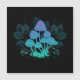 Mysterious, bioluminescent, hallucinogenic, bright toadstools with bushes of marsh plants on night, dark, glowing background. Glowing mushrooms. Goblincore, Mushroomcore,