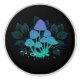 Mysterious, bioluminescent, hallucinogenic, bright toadstools with bushes of marsh plants on night, dark, glowing background. Glowing mushrooms. Goblincore, Mushroomcore,