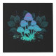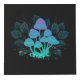 Mysterious, bioluminescent, hallucinogenic, bright toadstools with bushes of marsh plants on night, dark, glowing background. Glowing mushrooms. Goblincore, Mushroomcore,