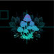 Mysterious, bioluminescent, hallucinogenic, bright toadstools with bushes of marsh plants on night, dark, glowing background. Glowing mushrooms. Goblincore, Mushroomcore,