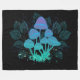 Mysterious, bioluminescent, hallucinogenic, bright toadstools with bushes of marsh plants on night, dark, glowing background. Glowing mushrooms. Goblincore, Mushroomcore,