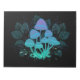 Mysterious, bioluminescent, hallucinogenic, bright toadstools with bushes of marsh plants on night, dark, glowing background. Glowing mushrooms. Goblincore, Mushroomcore,