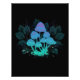 Mysterious, bioluminescent, hallucinogenic, bright toadstools with bushes of marsh plants on night, dark, glowing background. Glowing mushrooms. Goblincore, Mushroomcore,