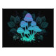 Mysterious, bioluminescent, hallucinogenic, bright toadstools with bushes of marsh plants on night, dark, glowing background. Glowing mushrooms. Goblincore, Mushroomcore,