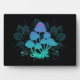 Mysterious, bioluminescent, hallucinogenic, bright toadstools with bushes of marsh plants on night, dark, glowing background. Glowing mushrooms. Goblincore, Mushroomcore,