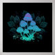 Mysterious, bioluminescent, hallucinogenic, bright toadstools with bushes of marsh plants on night, dark, glowing background. Glowing mushrooms. Goblincore, Mushroomcore,