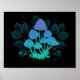 Mysterious, bioluminescent, hallucinogenic, bright toadstools with bushes of marsh plants on night, dark, glowing background. Glowing mushrooms. Goblincore, Mushroomcore,