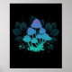 Mysterious, bioluminescent, hallucinogenic, bright toadstools with bushes of marsh plants on night, dark, glowing background. Glowing mushrooms. Goblincore, Mushroomcore,