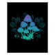 Mysterious, bioluminescent, hallucinogenic, bright toadstools with bushes of marsh plants on night, dark, glowing background. Glowing mushrooms. Goblincore, Mushroomcore,