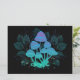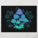 Mysterious, bioluminescent, hallucinogenic, bright toadstools with bushes of marsh plants on night, dark, glowing background. Glowing mushrooms. Goblincore, Mushroomcore,