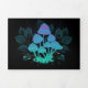 Mysterious, bioluminescent, hallucinogenic, bright toadstools with bushes of marsh plants on night, dark, glowing background. Glowing mushrooms. Goblincore, Mushroomcore,