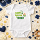 A cute baby bodysuit just in time for St. Patrick's Day, this item features graphic text that reads "Today Everyone is Irish" in fun green font. There is a clover with a picture of the Irish flag. Purchase yours today!