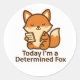 A kawaii-style fox holding a tiny notebook and pencil with a determined expression, captioned “Today I’m a Determined Fox.” Illustrated in a glossy, vibrant style on a clean white background. Perfect for planners, laptops, water bottles, and anyone who loves cute animal humor with a productive twist.