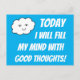 How about this adorable aqua blue colour postcard that says 'TODAY I WILL FILL MY MIND WITH GOOD THOUGHTS!' in big white letters below a cute and extremely happy smiling cloud!