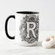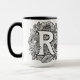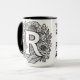 The tattoo style pen and ink illustration features a bold monogram initial letter surrounded by flowers and leaves from flowering plants!