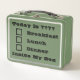 Lunch Box Lunchbox in Green Colour finish printed with Today Is Breakfast Lunch Or Dinner Inside My Lunch Box Lunch Box ? digital graphic text typography all in black colour design by TheFabricSeal print on demand shop at Zazzle.com #ZazzleMade https://www.zazzle.com/store/thefabricseal TheFabricSeal©️Original.