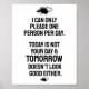 I hope you enjoy this great Poster with this funny saying, 'I CAN ONLY PLEASE ONE PERSON PER DAY. TODAY IS NOT YOUR DAY & TOMORROW DOESN'T LOOK GOOD EITHER' on it.