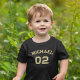 Create your own custom, personalised, cool, unisex sizing, modern, stylish faux gold typography / font / script, monogrammed player name jersey number classy black, 100% combed ring spun fine jersey soft cotton t-shirt tee shirt. Simply type in your name / kids name / player name and player jersey number, to customise. Makes a great gift for wedding, birthday, christmas, holidays, graduation, and more, for your loved ones, boy, girl, toddler, kids, grandkids, grandson, granddaughter, son, daughter, brother, sister, godson, goddaughter, nephew, niece, teams, club, teammates, athletes, soccer / football / hockey / baseball / softball fan, player, coach, sportsmen, friends and family.