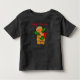 This holiday t-shirt for a toddler is shown in black in fine jersey with a cute gingerbread person print.