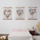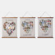 Custom photo display on large wall hanging, further personalised with your family names and custom text, such as "together we make a family". The photo template displays your pictures in a heart shaped photo collages which hold 29 images each, for a total of 87. Your photos are displayed in a mix of square, landscape and portrait formats and, if you have any problems with placement, you can try cropping your picture to the relevant shape and re-uploading. The background colour is neutral beige and you are welcome to change this to suit your home decor (click "edit using design tool").