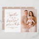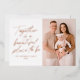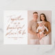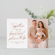 Modern photo Christmas card featuring the phrase "Together is a beautiful place to be" displayed in a handwritten rose gold foil script with a white background. Personalize the foil holiday card with your family name, year, and vertical photo. The card reverses to a blushed beige and white snowflake pattern.