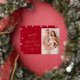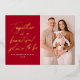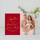 Modern photo Christmas card featuring the phrase "Together is a beautiful place to be" displayed in a handwritten gold foil script with a red background. Personalise the foil holiday card with your family name, year, and vertical photo. The card reverses to a red and white snowflake pattern.